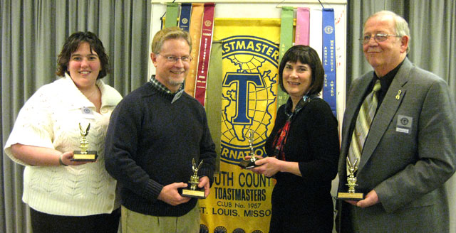 South County Toastmasters held it’s annual Speech and Evaluation contest February 17th and the picture shows the winners for 2010. From left to right.