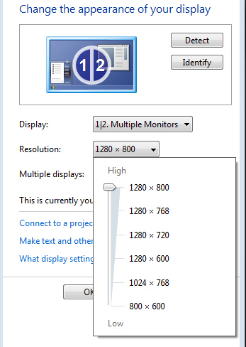 To change screen resolution, right click on an empty part of your desktop and choose Screen Resolution and choose the appropriate settings.