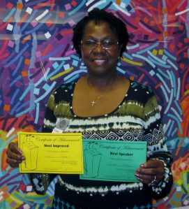 What started as a normal South County Toastmasters meeting ended with a very special achievement. Mrs. Tatum won Most Improved Speaker and Best Speaker for her presentation of ‘Who Moved My Cheese’ by Dr. Spencer Johnson.