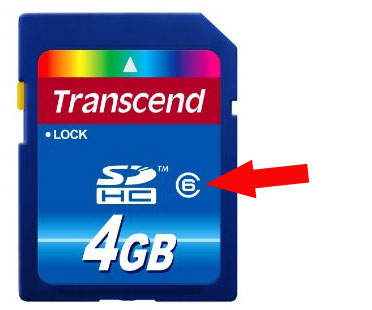 Here is the new video camera the club purchased. You will need an SD card with a speed class of 4, 6, or 10. The red arrow points to where you will see the speed class.