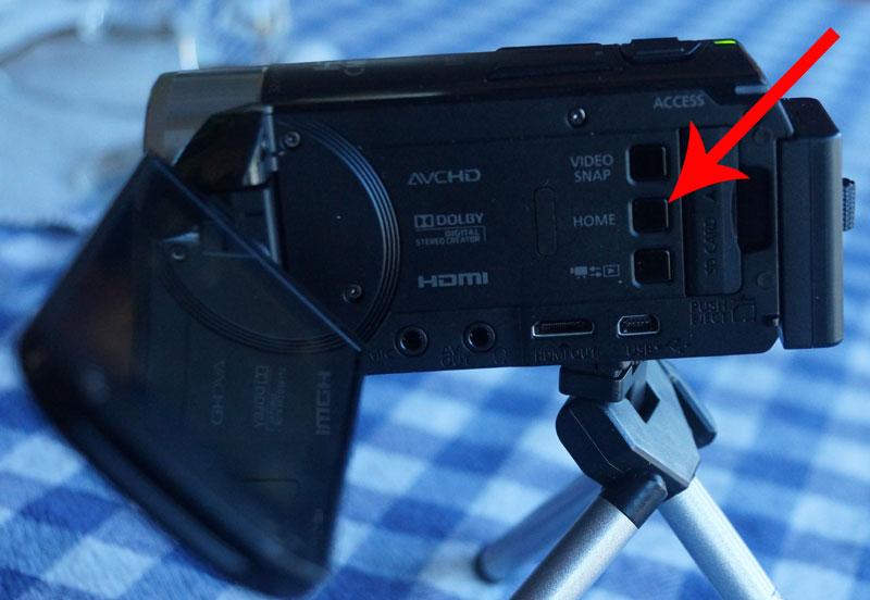 The first thing to do after you turn on the camera is to click on the HOME button on the camcorder. This is button you use to make all adjustments.