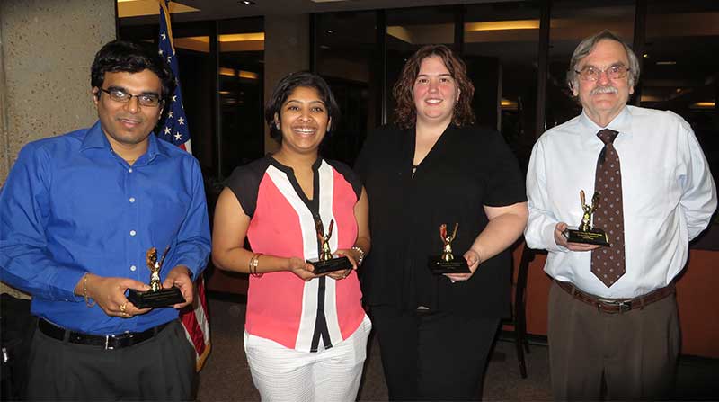Vamsi Jammalamadaka – Second place in Speech Contest, Shreya Gopal – First place in the Speech Contest, Erin Gissel – First place in the Evaluation Contest, Jim Bubash – Second place in Evaluation contest.