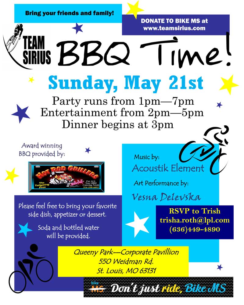 Dave Domian BBQ – May 21st May 8, 2017February 29, 2020 by Tom Terrific, posted in Club and Outside Social Events Dave Domian is inviting all club members to his annual Bike MS Team Sirius BBQ. Please RSVP to trisha.roth@lpl.com Share this: Click to share on X (Opens in new window) X Click to share on Facebook (Opens in new window) Facebook Click to share on LinkedIn (Opens in new window) LinkedIn Related