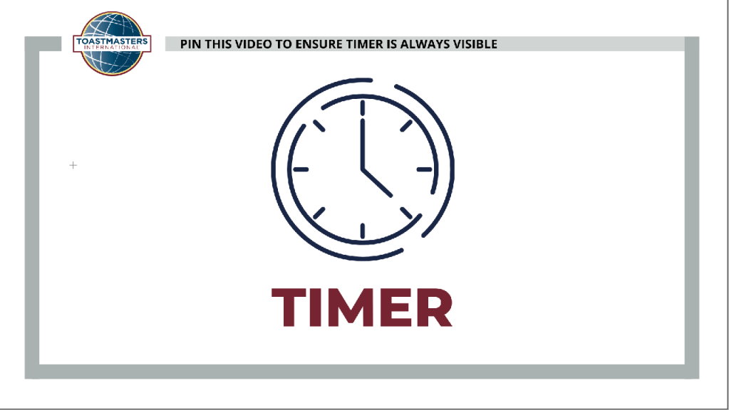 As Timer, you may want to remind online speakers to PIN or move your Timer video to the top left position so they can easily keep track of the time.