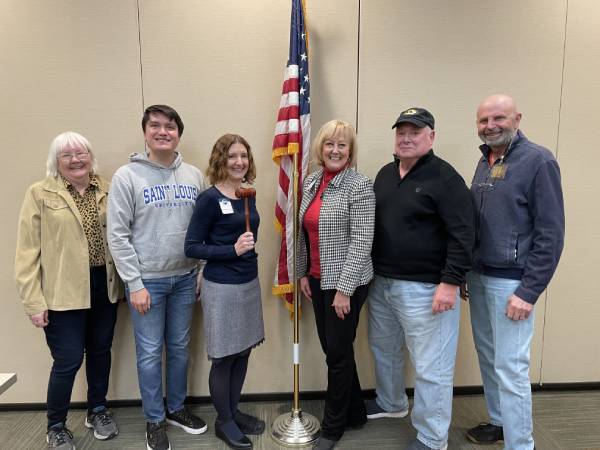 On Wednesday, January 4, 2023, the members of South County Toastmasters installed new officers to the Executive Committee for the January 2023 –June 2023 term. The new officers are shown above from left to right: Kathy Denton, Secretary; Patrick Hunt, Vice President of Public Relations; Debbie Young, President; Susan McConnell, Vice President of Membership; Charles Giamarino, Sergeant-at-Arms; Jim Salih, Treasurer; Adam Fox, Vice President of Education (not shown). Congratulations to all the new officers!!