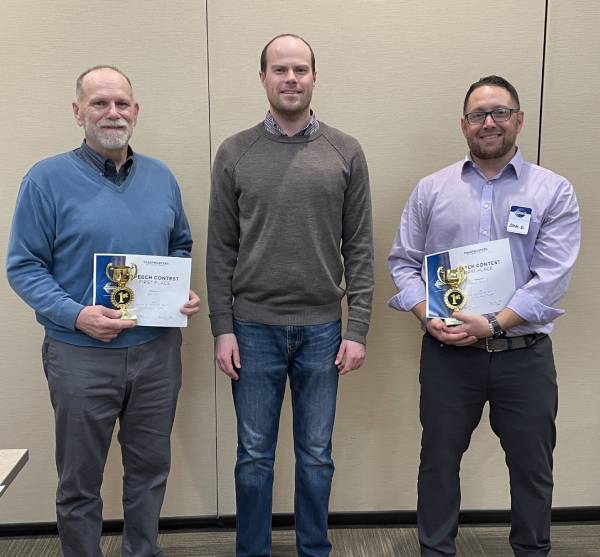 On March 22, 2023 Area Director, Brendan Akos, presented awards to Bill Collier and Steve Burchett for taking first place in the Area 4 Humorous Speech contest and International Speech contest held on February 11, 2023. On March 11, 2023, Bill and Steve competed in the Division A contests. Bill took first place and Steve took third place. Bill will advance to compete in the District 8 Humorous Speech contest on April 14, 2023. Shown above from left to right: Bill Collier, Brendan Akos and Steve Burchett. Congratualtions to Bill and Steve!