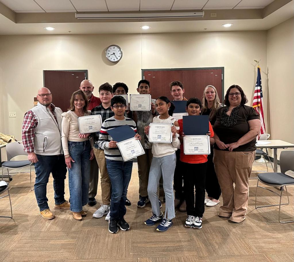 South County Toastmasters recently completed a Youth Leadership program led by Jim Salih and sponsored by Optimist International, represented by Michael Boles. For the past 8 weeks, youth ages 8 to 16 met weekly to learn about public speaking and the basics of Toastmasters meetings. To celebrate their completion of the program, a graduation ceremony was held on Tuesday, November 11th, 2025. Congratulations to all participants!
